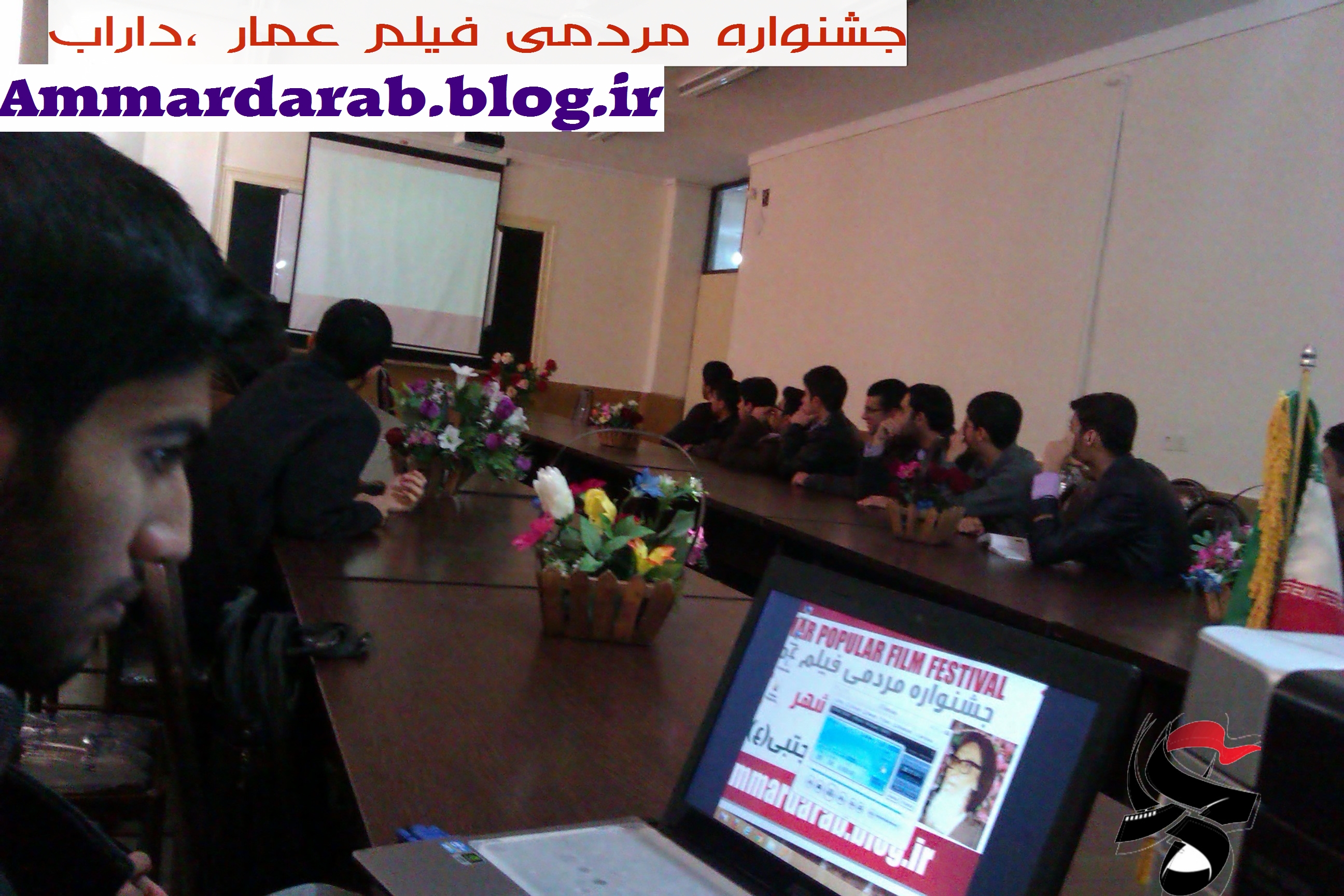 به گزارش واحد خبری اکرانهای مردمی جشنواره عمار در داراب، 130نفراز دانش آموزان مقطع دبیرستان مجتمع آموزشی میعاد در روستای مادوان از توابع شهرستان داراب در تاریخ 14 بهمن 92 روبروی پرده ی اکران جشنواره مردمی عمار نشستند و فیلم های" آواز نور،حق الناس ،کرایه هاآماده،جاودانه های فجر"را تماشا کردند.